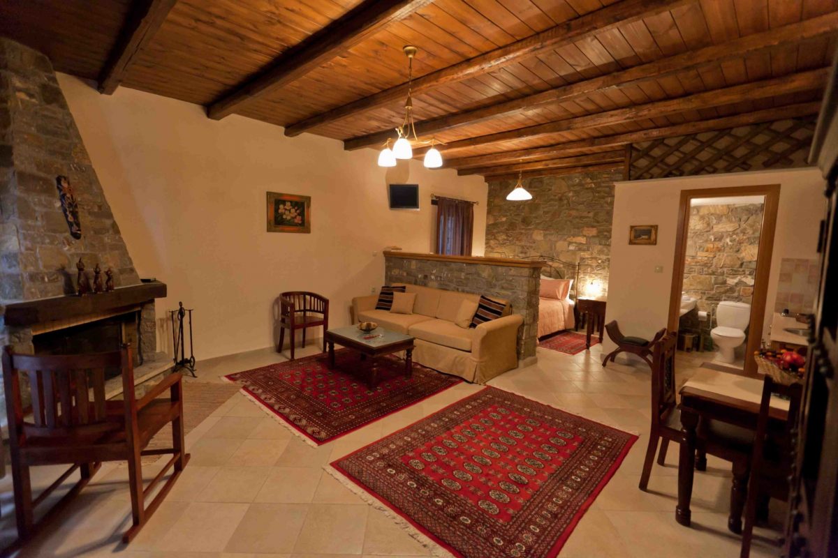 Δίχωρες λιθόκτιστες κατοικίες 40 τ.μ. Κάθε κατοικία περιλαμβάνει διπλό μεταλλικό κρεβάτι, άνετο μπάνιο με μπανιέρα, 3θέσιο καναπέ που γίνεται διπλό κρεβάτι, καθιστικό με τζάκι. Τα διαμερίσματα των 40 τ.μ., είναι ιδανικά για την άνετη φιλοξενία 2 ενήλικων.